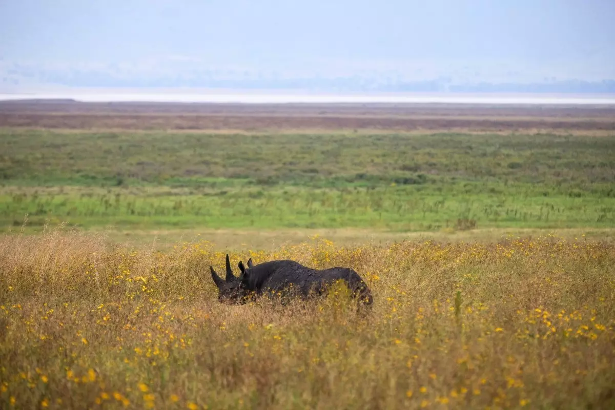 Elefanter, sebraer, gnuer, bøfler, løver, flamingoer, flodhester, antiloper, storker, hyener, sjakaler – selv det utrydningstruede sorte neshornet. Selve kraterbunnen er flat og 260 km2 stor. Hele 600 meter over dere ligger kraterkanten. Det føles som om dere er på verdens bunn, men faktisk ligger kraterbunnen 2 000 meter over havets overflate.