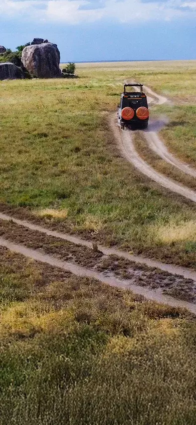 Etter noen fantastiske timer i krateret kjører dere opp igjen, og ferden går videre til Serengeti nasjonalpark. Dette er sannsynligvis blant de vakreste kjøreturene i verden. Fra det frodige området på og rundt vulkanen kjører dere nå mot de endeløse slettene i Serengeti, hvor bare små kratt – og et uendelig antall dyr – viser seg mot horisonten.