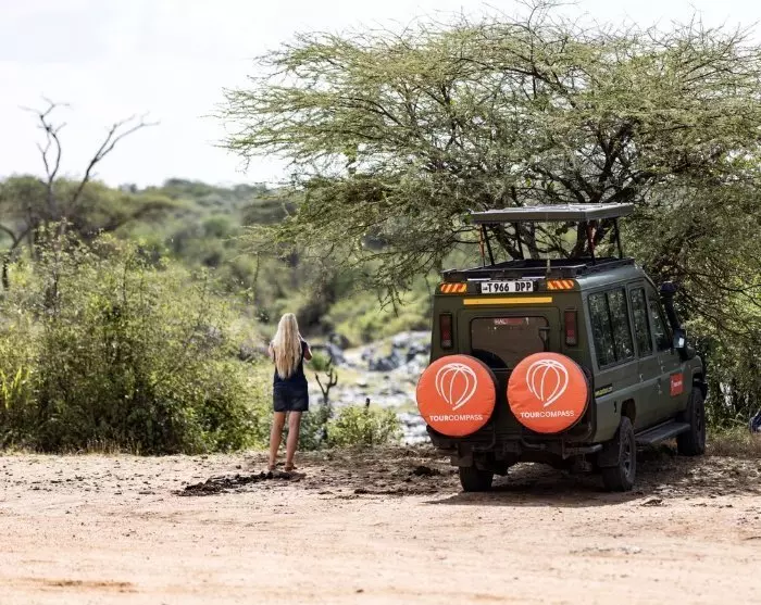 Utpå formiddagen kommer du frem til Ngorongoro Conservation Area og kjører opp på utsiden av krateret. Vegetasjonen endrer seg nå markant i forhold til Serengetis flate sletter, og nå dukker masaiene også opp. Kvinnene vasker klær i vannhullene, og de unge guttene driver kveg over gressområdene.