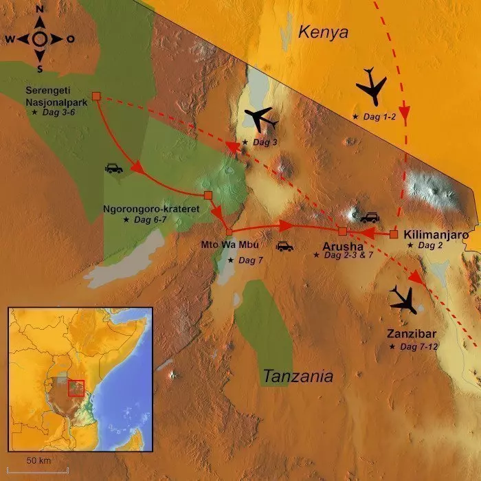 Du blir kjent med den lokale kulturen på et besøk i landsbyen Mto Wa Mbu, før Zanzibar lokker med idylliske, kritthvite strender, turkisblått hav og flotte utfluktsmuligheter.