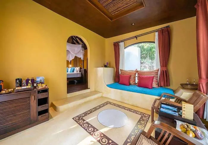 Resorten har 50 store rom som er tradisjonelt innredet. Alle rom har gratis Wi-Fi, aircondition, sikkerhetsboks, minibar, kaffe- og tefasiliteter, strykejern- og brett, TV, telefon, skrivebord, hårtørker samt bad med separat badekar og dusj. Fra balkongen er det utsikt til den tropiske hagen.