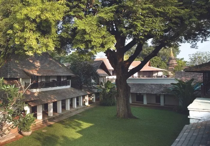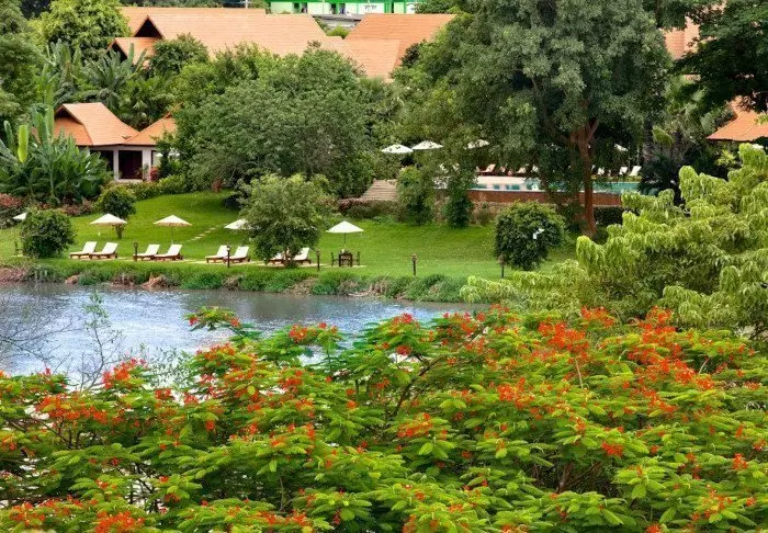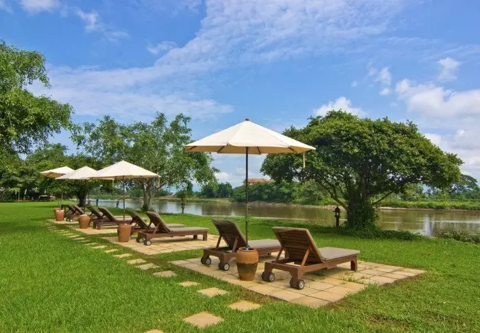 Resorten er bygd i tradisjonell Lanna-stil og harmonerer fint med omgivelsene. Bygningene er spredt over det store området som består av skyggefulle stier, lotusdammer, blomsterhager og en stor gressplen med liggestoler. Her kan du slappe av og nyte utsikten over elven.