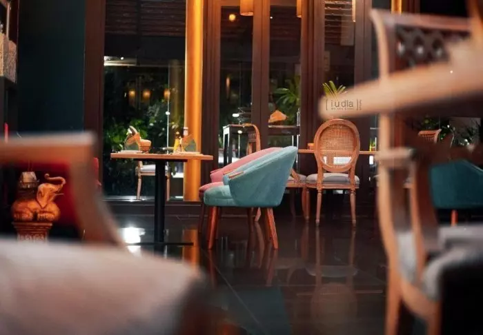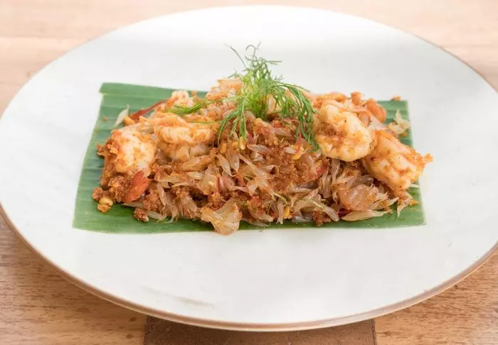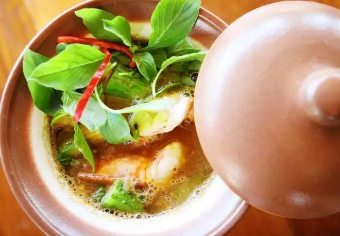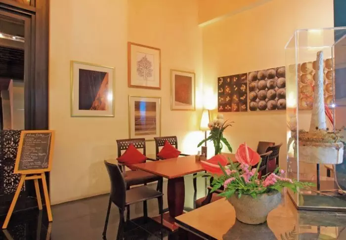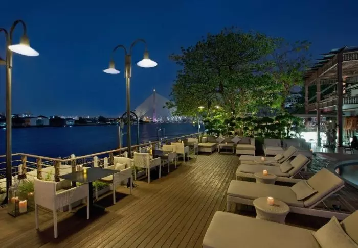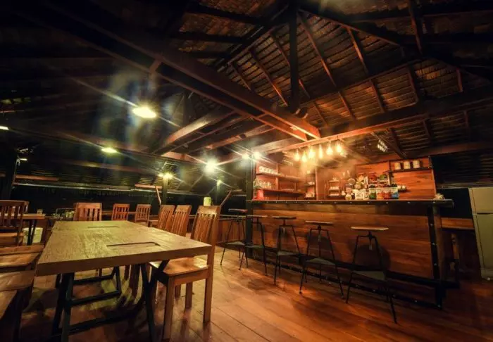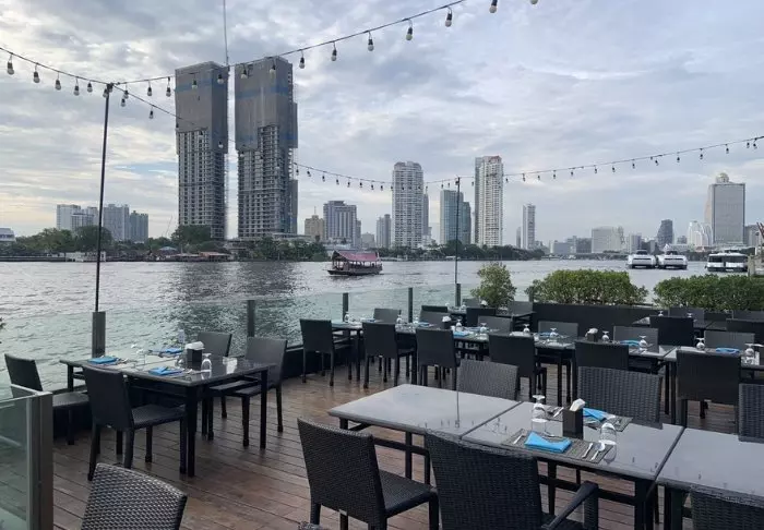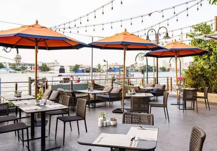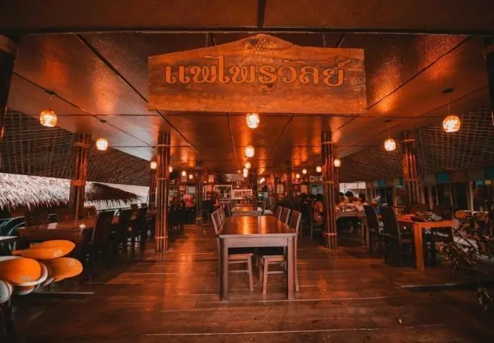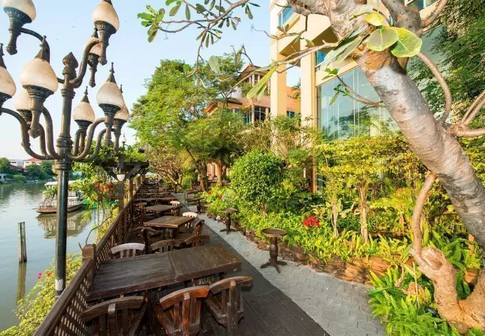 I en koselig, åpen restaurant med utsikt over elven serveres det smakfulle thailandske retter. Når mørket faller på, blir området opplyst av lanterner, noe som skaper en magisk stemning.
