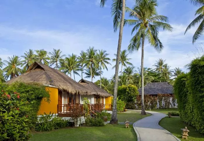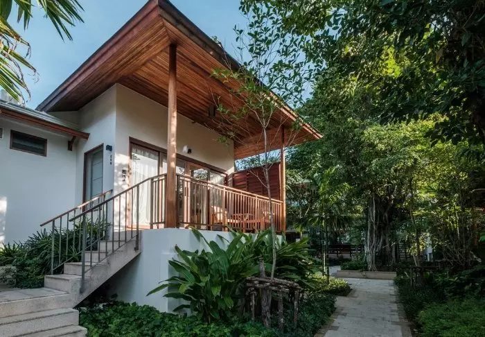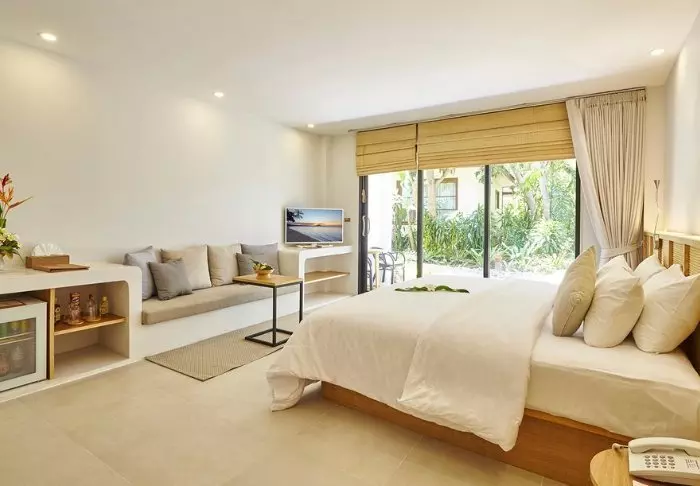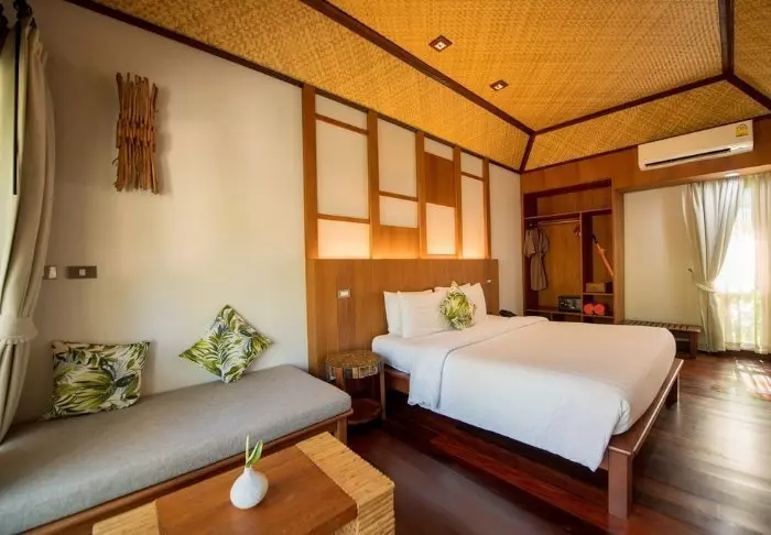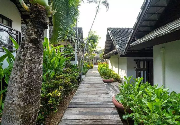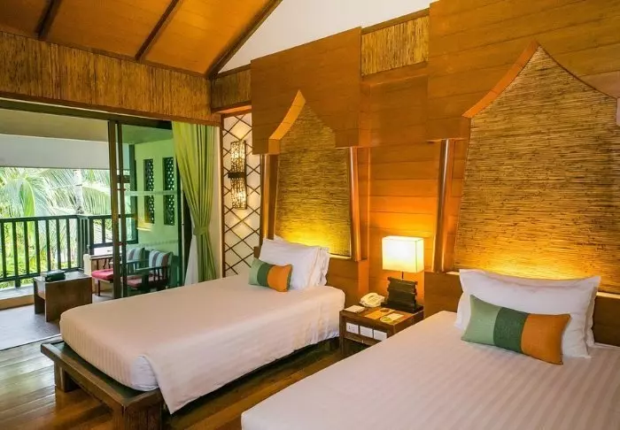 Resorten er omgitt av palmer og tropiske trær. Midt i de frodige hagene står bungalower og den sentrale hotellbygningen med utsikt og adgang til bassenget. Resorten har til sammen 80 pent innredede rom på min. 35 m2, og her kombineres eleganse og thailandsk sjarm med naturmaterialer. Alle rom er innredet med tanke på komfort og ro. Alle rom har Wi-Fi, aircondition, minibar, safe, TV samt kaffe- og tefasiliteter. Fra rommet ditt kan du se ut på de frodige hagene. Alle rom har også en møblert terrasse eller balkong der du kan nyte omgivelsene og den behagelige roen. Badet har både regndusj og badekar samt hårtørker og toalettartikler.