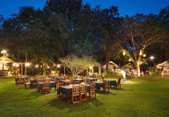 Resorten har flere spisesteder og bar. Hovedrestauranten, Sala Rimnam, ligger ved elven, i grønne omgivelser, og tilbyr både vestlige og thailandske retter fra det åpne kjøkkenet. La Casa Italian Restaurant serverer smakfulle italienske retter, mens Suan Chainam, som ligger som små terrasser i hagen, serverer grillmat og tapas samt kjølige øl, eksotiske cocktails og vin.
