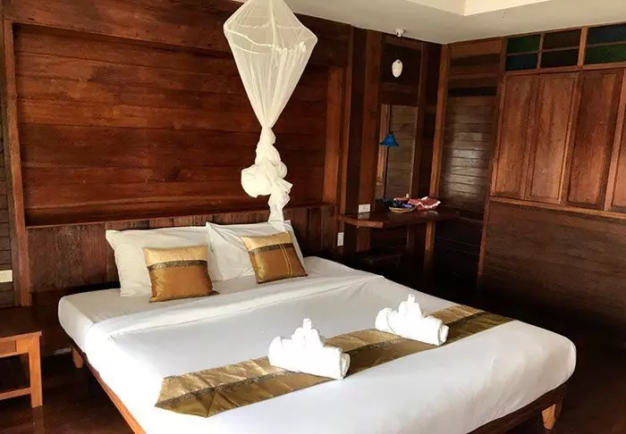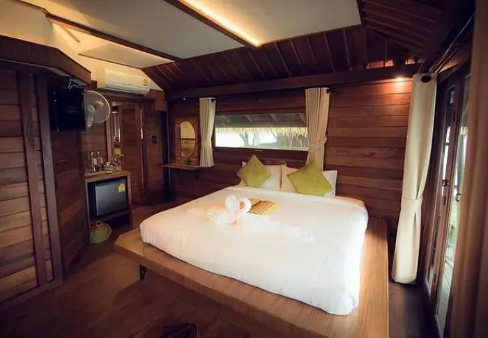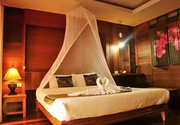Resorten er bygd som en tradisjonell landsby og er veldig hyggelig. Her er det i alt 62 rom som er innredet i klassisk thailandsk stil med mørke teakmøbler og fargerike vegger og tekstiler. Alle rom har Wi-Fi, aircondition, minibar, mineralvann på flaske, kaffe/te-fasiliteter, TV, telefon og paraply. På badet finner du hårtørker og toalettartikler. Fra balkongen kan du nyte utsikten til enten hagen eller kanalen.
