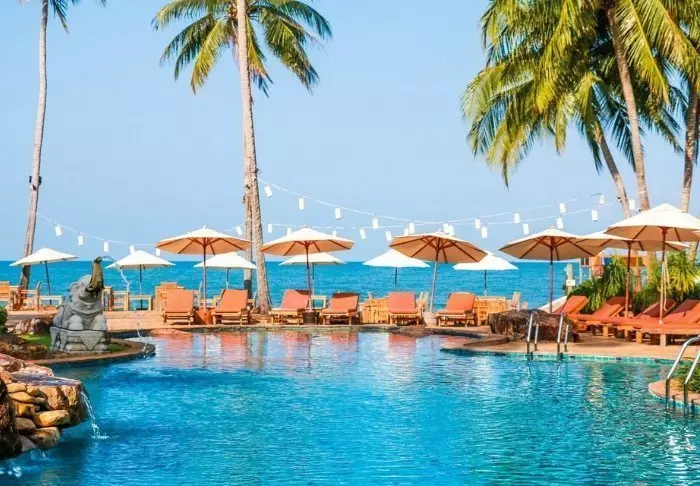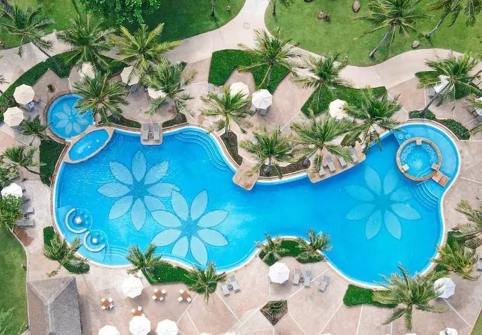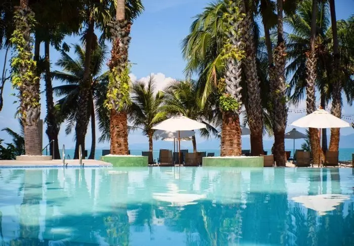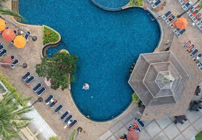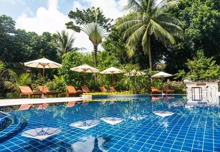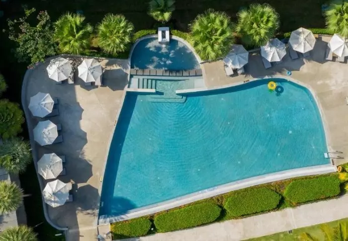 Når du ikke er på sightseeing, kan du avkjøle deg med en dukkert i svømmebassenget som er både for store og små. Her er det også liggestoler og høye, grønne palmer som skaper tropisk stemning.