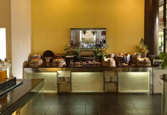 Hotellet har også kafe og restaurant som både serverer frokost, lunsj og middag.