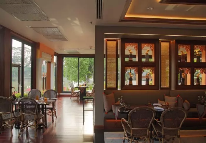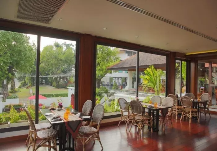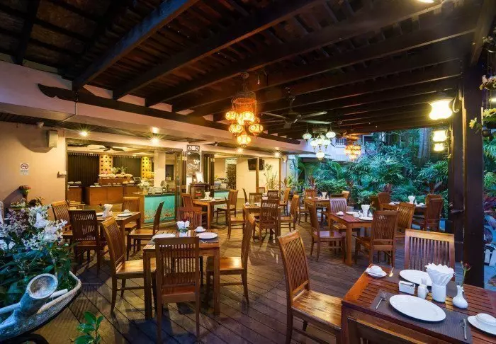 Restauranten Golden Teak har et godt utvalg av nord-thailandske spesialiteter og internasjonale retter, som kan spises både inne og utendørs – perfekt for en kveld i vakre omgivelser.