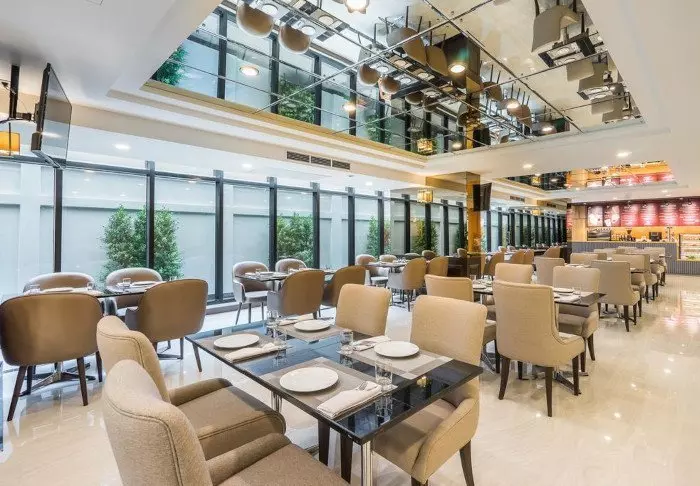 Hotellets hyggelige restaurant serverer utsøkte retter som inkluderer alt fra thailandske delikatesser til internasjonale favoritter.