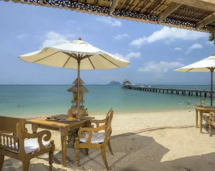 Santhiya ligger på den vakre øya Koh Yao Yai og har en fantastisk beliggenhet midt i den uberørte naturen, i et frodig klippelandskap med utsikt over det billedskjønne Andamanhavet. Det ligger på den vestlige siden av Koh Yao Yai, ved stranden Loh Pared, en av øyas beste strender.