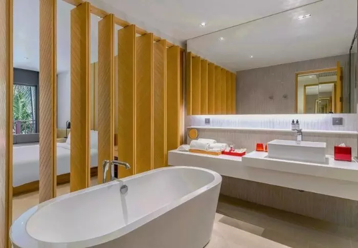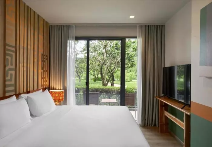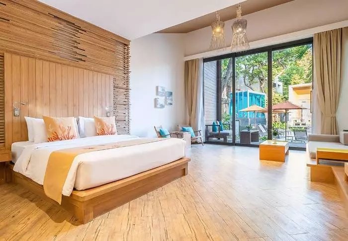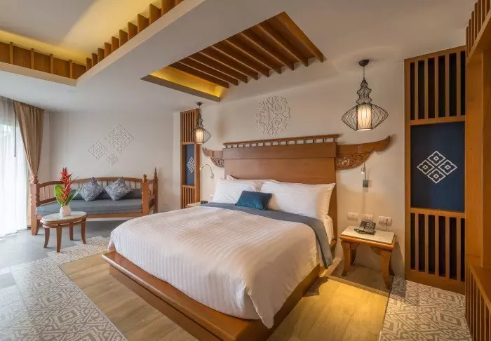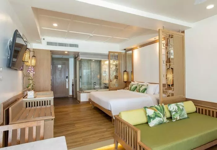 Resorten har 275 rom som er oppført i moderne thailandsk stil og innredet i lyse og dempede farger. Alle rom har balkong og Wi-Fi, TV, aircondition, minibar, skrivebord og et lille sitteområde. På badet finner du regndusj, hårtørker, badekåpe og tøfler.