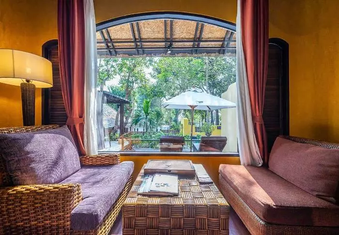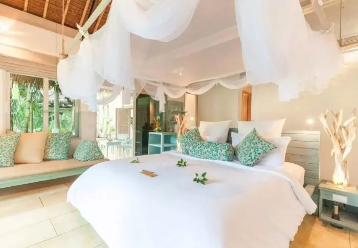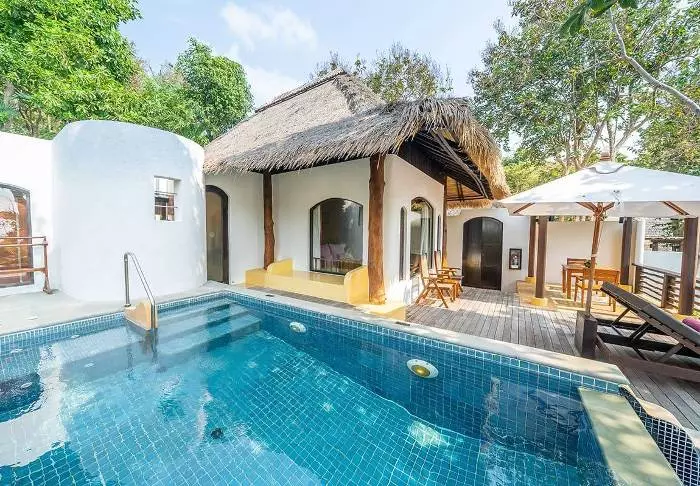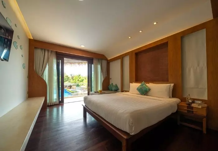 En frodig hage og en 300 meter lang privat sandstrand danner rammen om 40 sjarmerende villaer som har utsikt til enten de frodige hagene eller det vakre Andamanhavet. Noen har til og med eget basseng. Alle villaene har Wi-Fi, aircondition, takvifte, safe, minikjøleskap, TV, paraply, kaffe- og tefasiliteter samt gratis mineralvann på flaske. Badene har utendørs dusj, toalettartikler og hårtørker. Villaene har dessuten egen veranda med bord og stoler, så her kan du trekke deg tilbake og slappe av med en god bok eller bare nyte stillheten og de grønne omgivelsene.