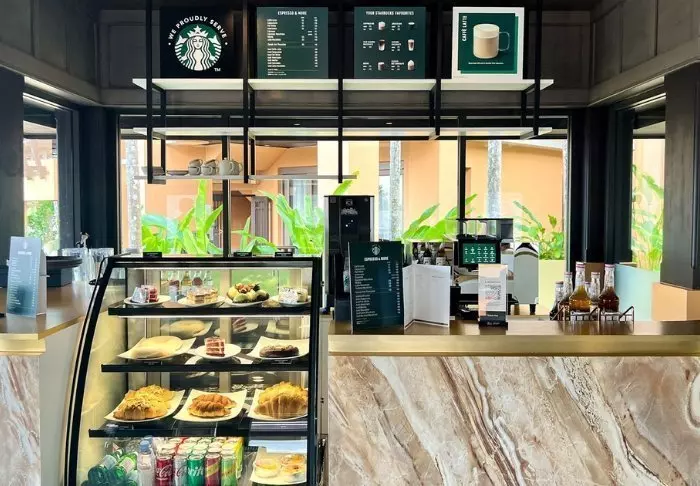 Resorten har også kafe og restaurant der det serveres både thailandske og internasjonale retter.