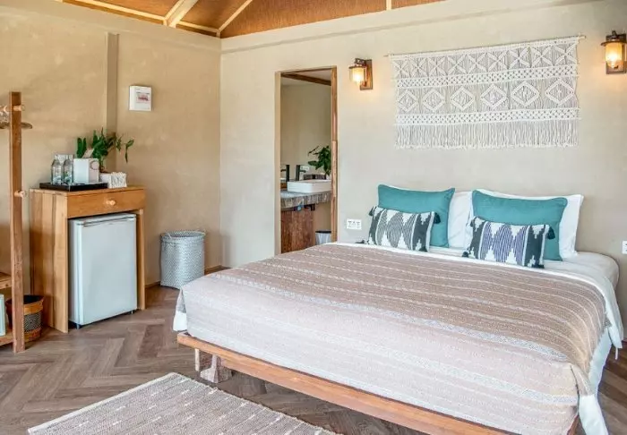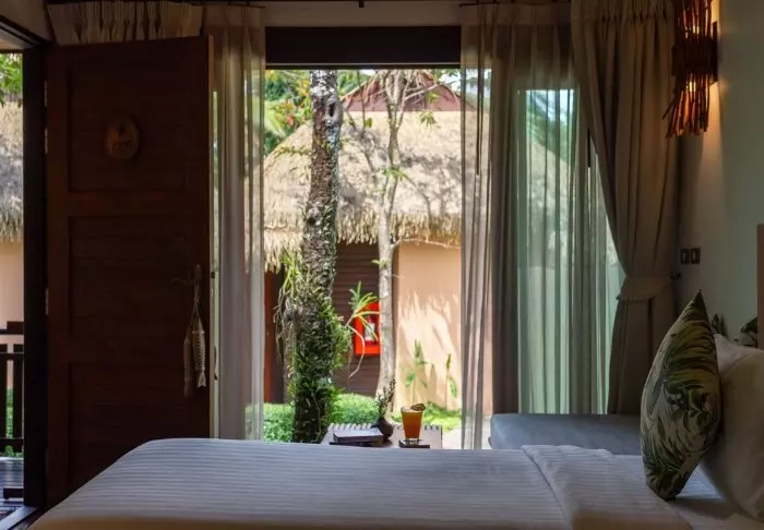 Hotellet består av flere bygninger som ligger i frodige omgivelser med velpleide hager og høye palmer som vaier i den milde brisen. Resortens 116 rom er innredet for å gi deg et privat og fredelig opphold. Alle rom er lyse og har en moderne innredning som harmonerer perfekt med naturen utenfor. Fra den møblerte terrassen har du utsikt til den frodige hagen som omgir resorten, og du her kan du drikke en avslappende morgenkaffe eller nyte stillheten. Alle rom har moderne bekvemmeligheter som Wi-Fi, aircondition, safe, minibar, kaffemaskin og flaskevann. Badet er en opplevelse i seg selv. Det har både badekar og regndusj samt toalettartikler, hårtørker og badekåpe.