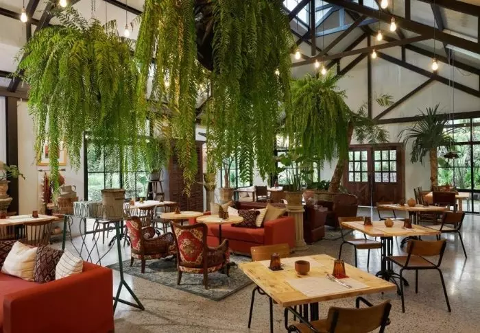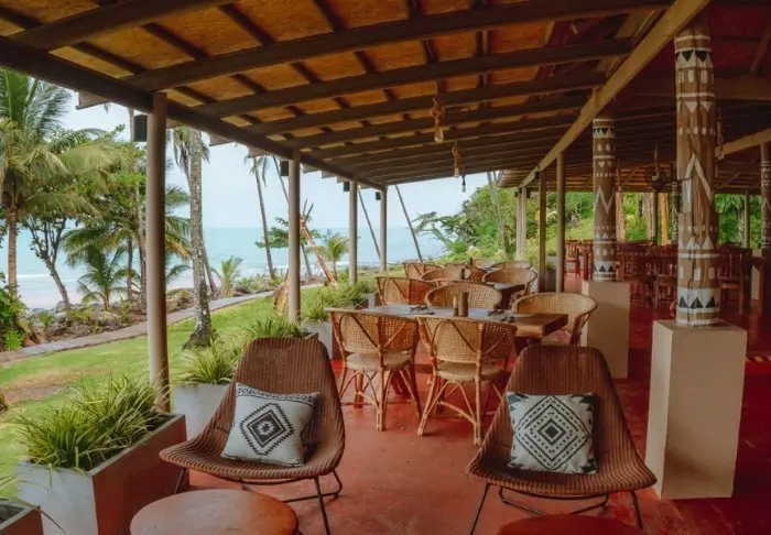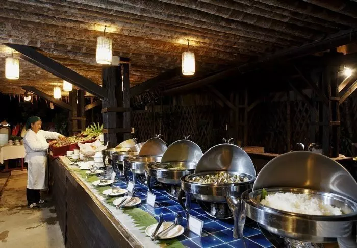 Maten på resortens restaurant er økologisk, og ingrediensene kommer i størst mulig omfang fra egen produksjon.