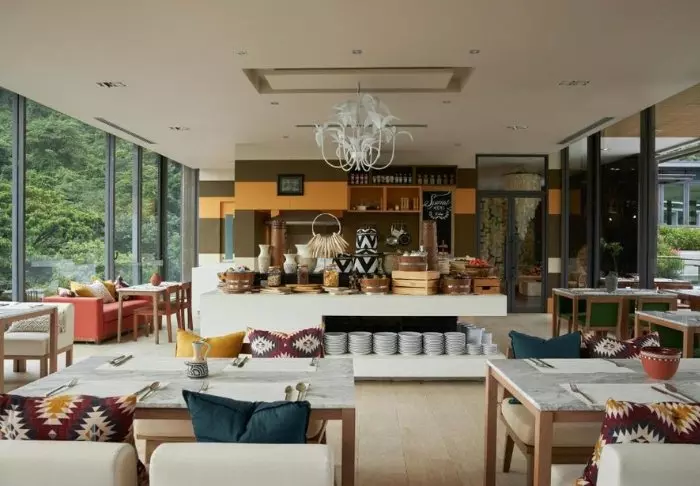 På hotellets restaurant, Dum Ya Restaurant, kan du nyte et deilig måltid med fantastisk utsikt, og asiatiske karriretter er spesielt populære her.