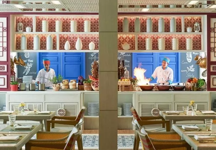 Start dagen med en deilig amerikansk frokostbuffet på The Kitchen, og gå til Sassi’s Beach Club for å få servert thailandske og internasjonale retter med havutsikt. Ta turen innom The Mellow Bean for småretter som panini-smørbrød, en kopp kaffe og deilige kaker. Hvis du trenger å kjøle deg ned i varmen, kan du nippe til en eksotisk cocktail i swim-up-baren mens solen går ned i horisonten.