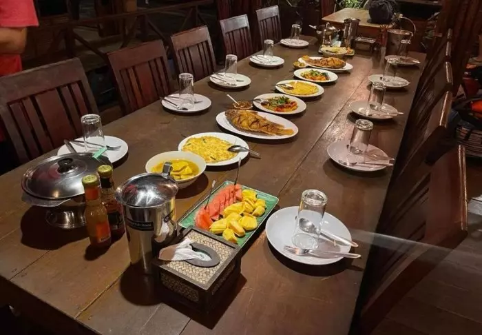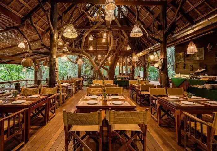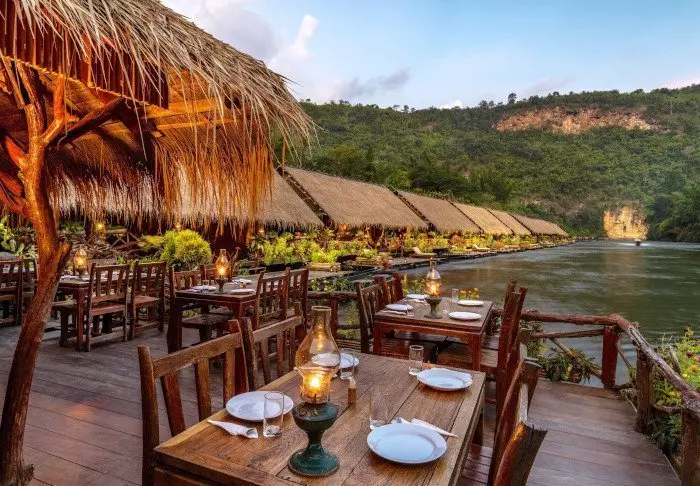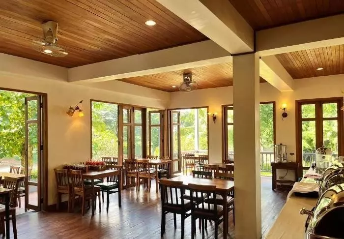 Resorten har sin egen restaurant som serverer lokale retter laget med ferske lokale råvarer, som du kan nyte mens du studerer utsikten over elven.