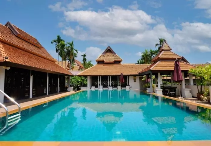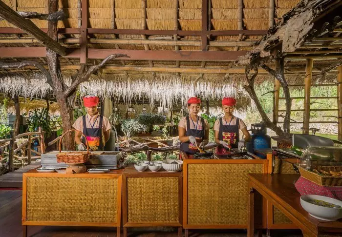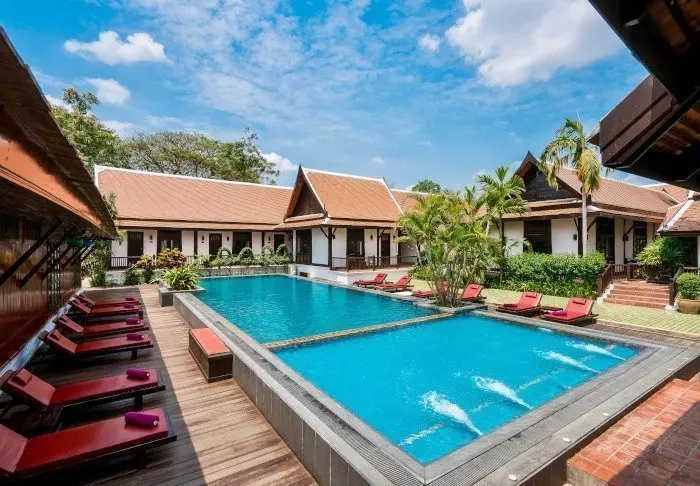 Resorten er bygget i og dekorert med vakkert, mørkt tre og utstråler nord-thailandsk sjarm.