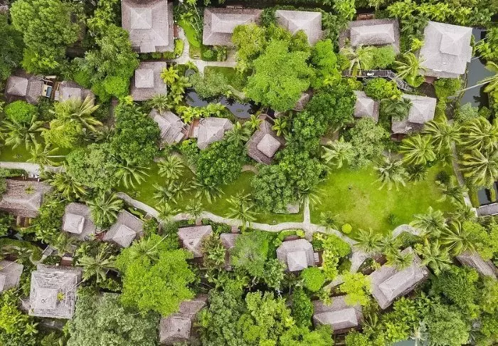 Lodgen ligger ved selve Sok-elven og er omgitt av regnskog. Hele resorten er bygget av naturmaterialer og i en stil som passer inn i naturen rundt. Her prioriteres miljø og bærekraft. Gjestene oppfordres f.eks. til å ta med seg sin egen vannflaske og fylle den med renset vann for å redusere bruken av plast.