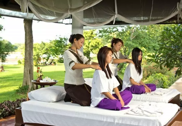 Etter en dag med mange opplevelser kan du ta en dukkert i evighetsbassenget eller en tradisjonell thailandsk massage på det utendørs spa-et, Chiang Saen, før middagen serveres.