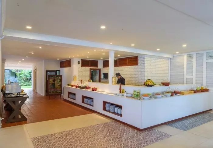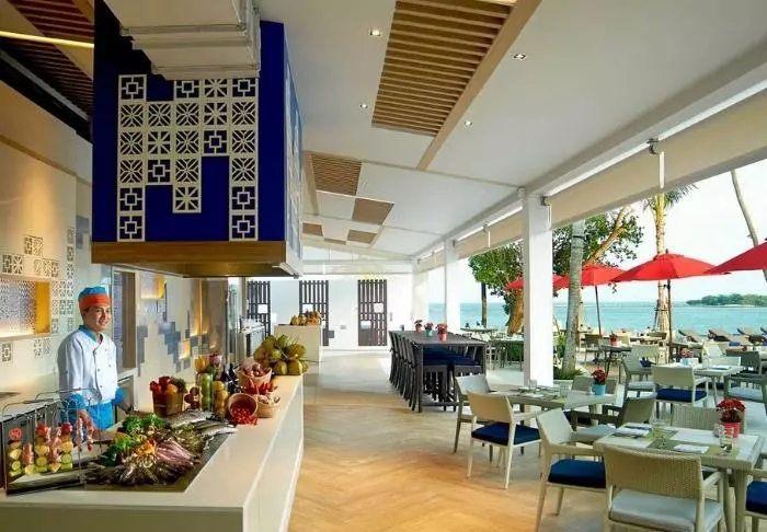 Når du blir sulten, kan du legge veien til et av resortens 3 spisesteder, som alle har utsikt over havet: Atrium Café, Beach Bar & Restaurant og Poolside Bar. Her serveres det både asiatiske og internasjonale retter. Du bør også unne deg en forfriskende drink i strandkanten.