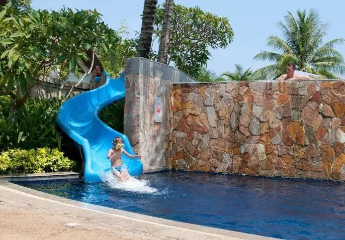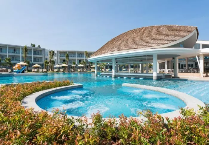 Resorten består av tre hotellfløyer, og hver fløy har hyggelige bassengområder. I tillegg har stedet et evighetsbasseng, og her står tiden nesten stille når du hviler hodet på bassengkanten og nyter utsikten av de vaiende palmene ved det vakre, smaragdgrønne havet. Resorten har også et bassengområde for barn med gode muligheter til å plaske i vannet og leke på vannsklien.
