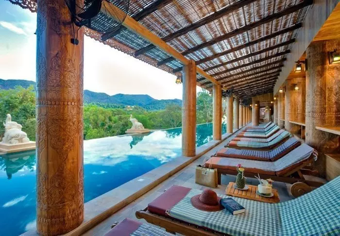 Etter en dag fylt med opplevelser, kan du nyte en dukkert i hotellets evighetsbasseng, som er vakkert dekorert med lokalproduserte fliser. Du kan også bare slappe av ved bassenget og beundre den fantastiske utsikten over grønne enger og Mae Yen-fjellet. Det er til og med solsenger, slik at du enkelt kan hvile og slappe av under solens stråler.