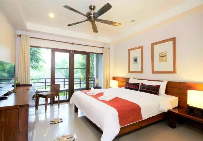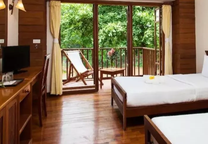 Resorten har 42 komfortable rom som er innredet i tradisjonell thailandsk stil med teakmøbler. De er alle utstyrt med komfortable senger, aircondition, Wi-Fi, sikkerhetsboks, vannkoker for å lage te og kaffe, samt et garderobeskap og et skrivebord. Badet er fint og enkelt med dusj og toalettsaker. Du kan sitte på balkongen med en kopp kaffe og nyte roen og utsikten over den velstelte hagen og Yuam-elven, mens resortens gartner vanner plantene i hagen.