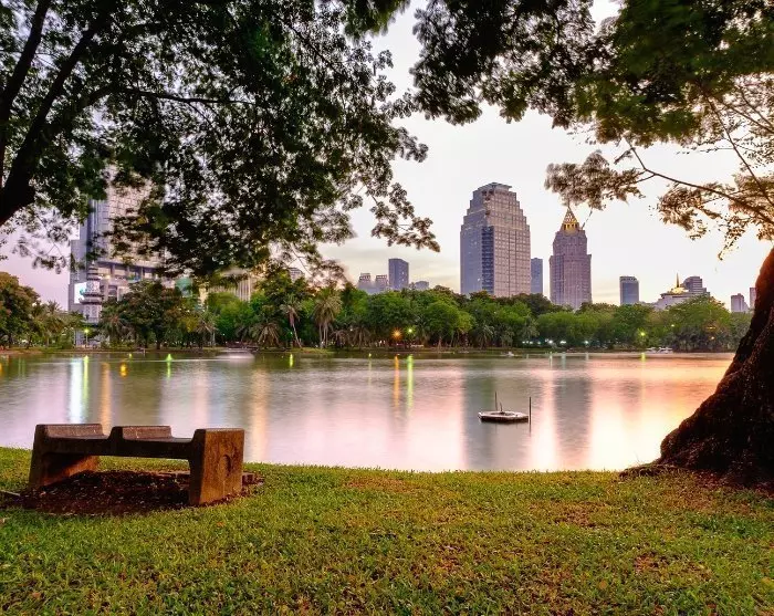 Etter å ha vandret rundt i Bangkok i den tropiske varmen og støyende trafikken, vil du sikkert etter hvert drømme deg til grønnere og roligere steder. Da passer det godt med et besøk i parkene Lumpini eller Benjakiti. Du kan også bevege deg over til den vestlige siden av elven, der du kan oppleve en helt annen verden, uten skyskrapere og tutende tuk-tuk-er. Her møter du det tradisjonelle Bangkok og en labyrint av kanaler der husene står på påler og postbudene kommer med båt.