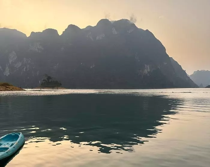 Etter frokost blir du hentet på hotellet, og du vinkler farvel til regnskogen og setter kurs mot Cheow Lan-sjøen, der mer enn 100 kalksteinsklipper stikker opp av det smaragdgrønne vannet.