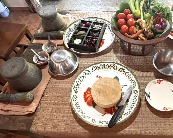 Nå er det på tide å brette opp ermene og prøve å lage tradisjonelle retter, og her tilberedes maten med kjærlighet til de friske, lokale råvarene. Du får først høre litt om de klassiske matlagingsmetodene, og deretter skal du selv prøve å trylle frem smakfulle retter av kjøtt, grønnsaker, ris og duftende krydder. Til slutt kan du spise det du har laget, og maten nytes best på terrassen i tredje etasje, med utsikt over landsbyen rundt.