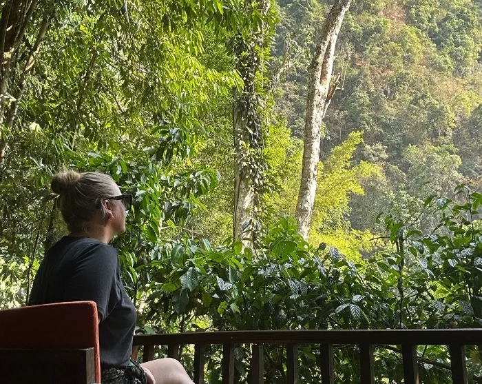 Etter en flott 3-4 timers sykkeltur venter en velfortjent, deilig lunsj som består av retten ”khao soi”, en krydret nudelsuppe som er en kjent spesialitet i det nordlige Thailand. Lunsjen serveres på restauranten Naree De Klang Vieng, og den drives av innsatte i kvinnefengslet Klang Vieng. Takket være fengslets fremragende rehabiliteringsprosjekt får kvinnene, som vanligvis er dømt for salg eller produksjon av narkotiske stoffer, mulighet til å utdanne seg innen ulike servicefag, noe som forbereder dem på tilværelsen utenfor fengselsmurene. Maten og servicen er helt topp!