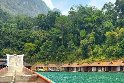 Ved Cheow Lan-innsjøen bor du i en flytende bungalow omgitt av majestetiske kalksteinsklipper og speilblankt vann. Du kan bade rett fra verandaen, padle kajakk, dra på båtsafari ved solnedgang og i morgengryet, og nyte stillheten når disen letter over vannet – en magisk opplevelse.