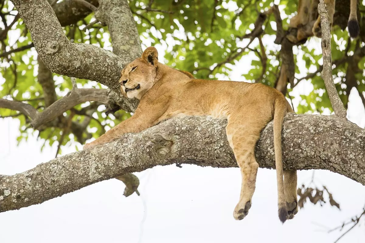 Om ettermiddagen går turen sørover mot Ishasha, kjent for sine treklatrende løver. Enten i ettermiddag eller i morgen formiddag blir det en game drive der du blant annet drar ut på utkikk etter de treklatrende løvene. Som regel klatrer de opp i trærne for å komme seg vekk fra fluer og for å søke skygge fra den stekende solen. Det er ganske uvanlig for løver å klatre i trær, men man kan se denne atferden i enkelte nasjonalparker i Tanzania og i Uganda.