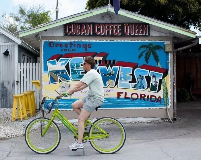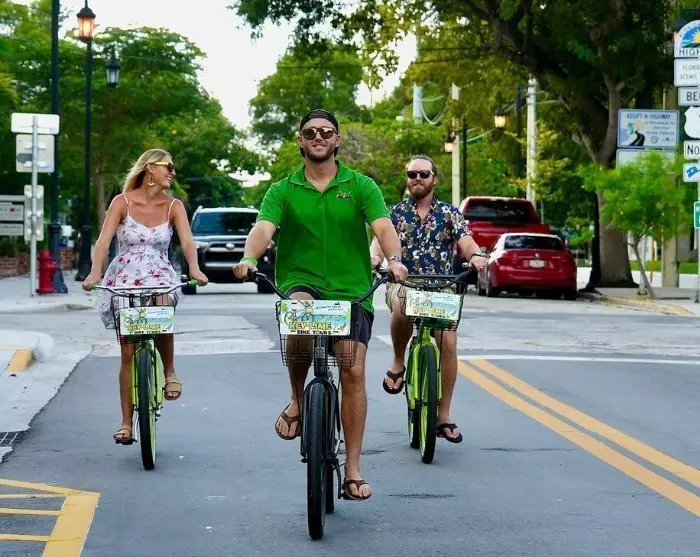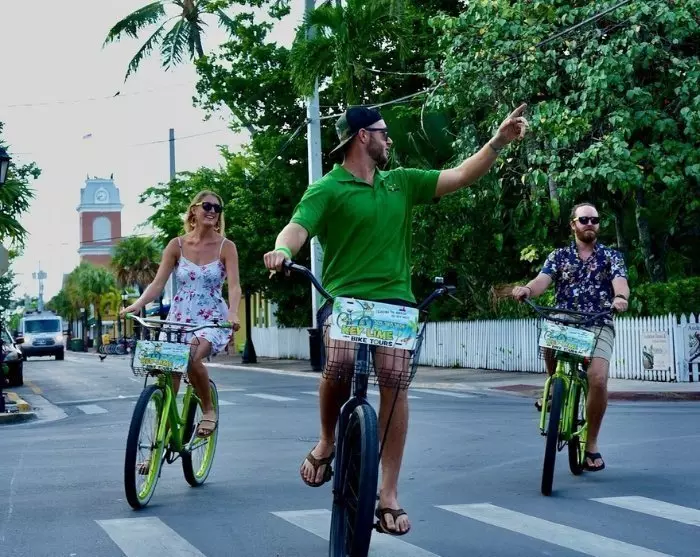 Turen inkluderer: Lisensiert lokal guide, sykkelutleie, hjelm, sykkelkurv, én flaske vann, én bit Key lime-pai