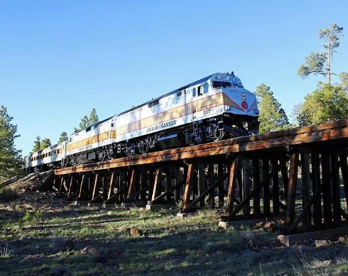 Bli med på denne uforglemmelige heldagsturen fra Williams til Grand Canyon South Rim tur/retur. Her kan du ta toget tilbake i tid når du kjører gjennom det varierte, flotte landskapet på den historiske jernbanelinjen som ble etablert i 1901.