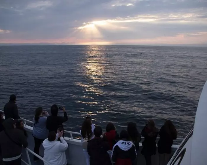 Turen foregår ombord på en av de største båtene i Monterey-flåten, på hele 110 fot, og her kan du både oppholde deg ute på dekk og i oppvarmede oppholdsrom. Ombord kan du også oppgradere til det øverste VIP-dekket (mot betaling – først til mølla). Det er toaletter ombord.