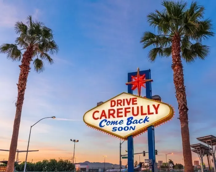 Med mindre du har valgt å kjøpe ekstra dager med leiebil i Las Vegas, skal du i dag ta en taxi til flyplassen, som ligger i den ene enden av Las Vegas Blvd. Hvis du i stedet har beholdt leiebilen under oppholdet i Las Vegas, må den returneres på flyplassen (du finner mer informasjon på voucheren). Prosessen er enkel og grei, og bagasjen din fraktes til flyplassen når alt er klart. Så går flyet tilbake til Europa.