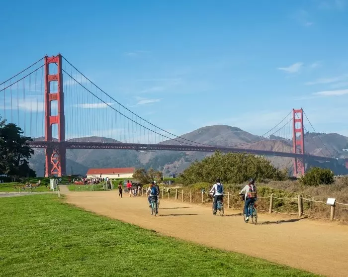 Ikke gå glipp av en tur over den ikoniske røde hengebroen, som åpnet i 1937. Fra den andre siden av broen får du fantastisk utsikt over byens tak – og ikke minst fengselsøya Alcatraz, som fra 1934–1963 huset USAs mest hardkokte kriminelle, inkludert gangsteren Al Capone. Du kan vurdere å krysse broen med sykkel, som kan leies mange steder i området rundt Fisherman’s Wharf.