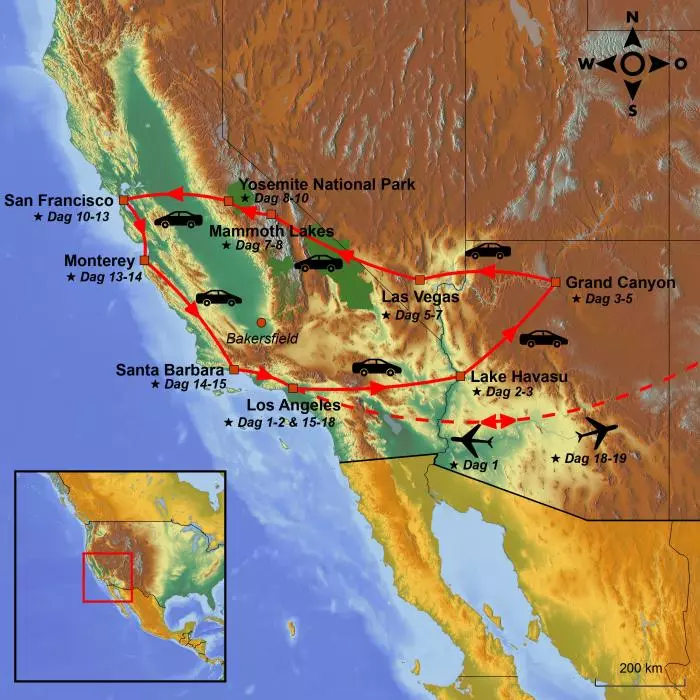 Reisen starter i Los Angeles, og deretter venter ørkenlandskaper, Route 66, og et av verdens sju naturlige underverker, Grand Canyon. Du vil garantert bli imponert av dette fantastiske landskapet og dets oransjerøde farger.