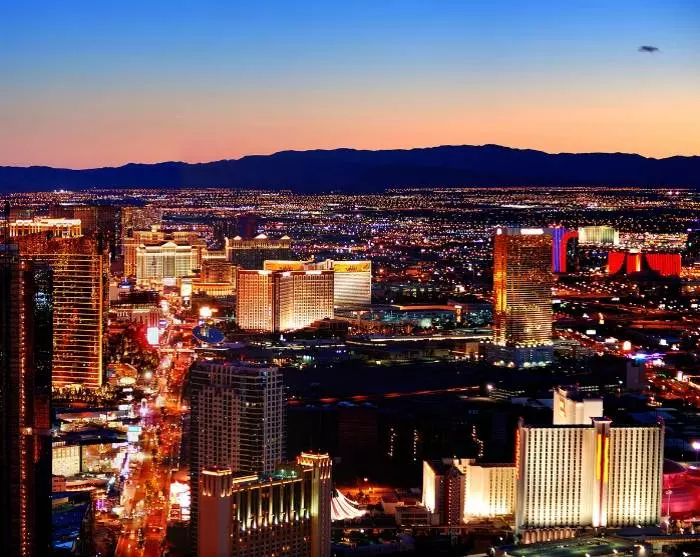 Etter hvert som du nærmer deg Las Vegas vil ørkendisen bli avløst av gigantiske temahoteller som ligger side ved side på den knapt 7 km lange Las Vegas Bldv. Kanskje bedre kjent som The Strip.