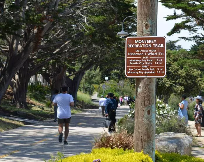 I sommermånedene kan du bruke den gratis shuttlebussen som kjører mellom Fisherman’s Wharf, Cannery Row og Monterey Bay Aquarium.