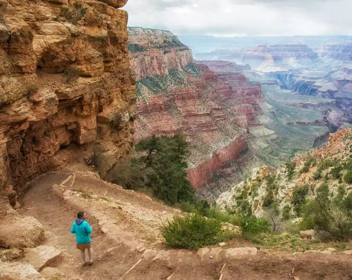 Du kan også iføre deg komfortable sko og begi deg ut på en av områdets mange turstier. Den mest populære ruten heter Bright Angel Trail, og i tillegg til naturskjønne utsikter er det vanlig å se muldyr, fjellgeiter rovfugler på veien. Mange går likevel bare den første delen av den i alt 15 kilometer lange ruten. Du vil oppleve forholdsvis store temperaturvariasjoner når du beveger deg ned i “the canyon”, der det er betydelig varmere enn på toppen.