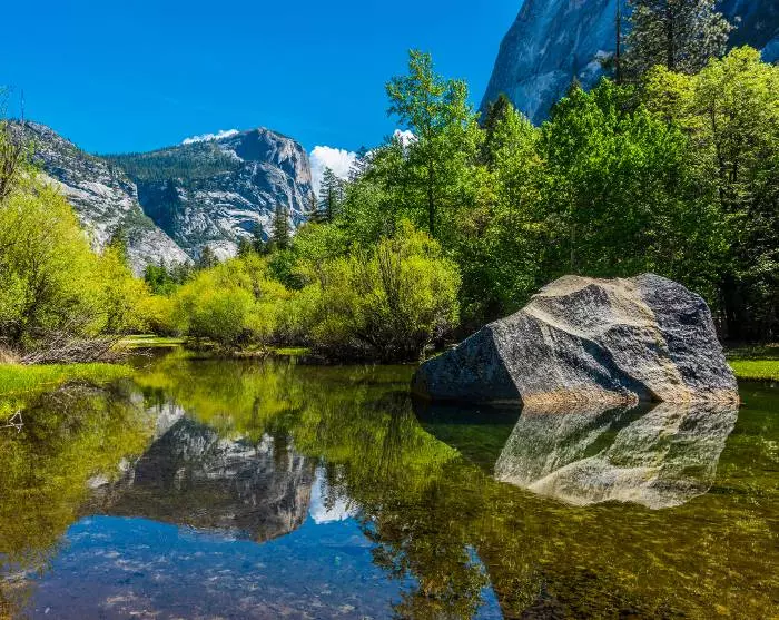 Fjell, speilblanke sjøer og nåletrær er bare noe av det du får se de neste dagene. I dag forlater du Mammoth Lakes, og snart venter det en helt annen natur, for etter hvert kommer du frem til den mer enn 3000 km2 store Yosemite nasjonalpark. Kjører du ruten om sommeren, kan du kjøre via Tioga-fjellpasset. Det er normalt stengt snø fra november til juni.