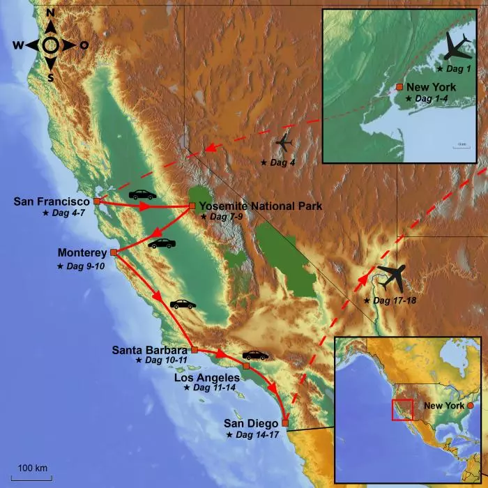 Du sjekker ut av hotellet og bestiller en taxi eller Uber til flyplassen i New York. Hotellet kan også hjelpe deg med å bestille transport. Du finner informasjon om hvilken flyplass, avgangsterminalen og avgangstiden på voucheren din. Fra New York flyr du vestover til San Francisco, som ligger i den nordlige enden av delstaten California.