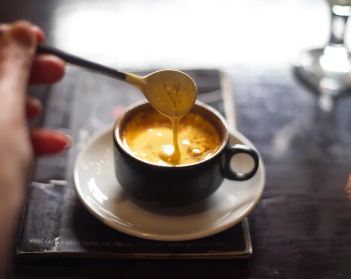 Du finner selv veien til startstedet, Hidden Gem Café – en skjult og bærekraftig kaffebar, hvor du får en kort introduksjon og ser hvordan den ikoniske vietnamesiske eggekaffen lages.