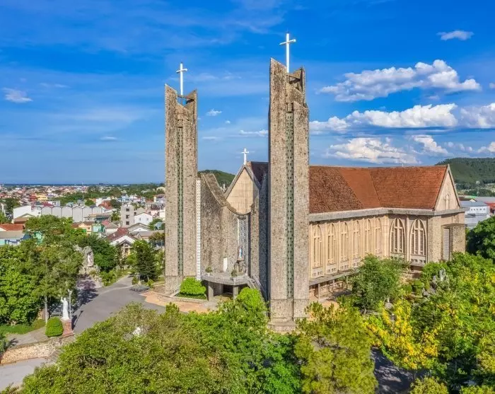 Turen fortsetter til Phu Cam-katedralen, en betydningsfull katolsk kirke kjent for sin imponerende arkitektur som kombinerer moderne design med tradisjonelle elementer. Phu Cam-katedralen er bygget på en høyde med utsikt over Hué og har en storslått fasade med to høye tårn som strekker seg mot himmelen. Katedralen er et sentralt samlingspunkt for det katolske samfunnet i Hué og et viktig symbol på den kristne tilstedeværelsen i regionen.