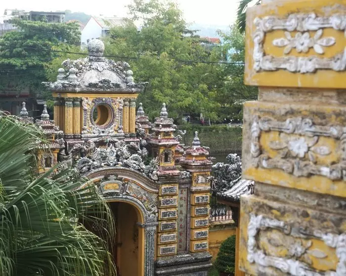Turen avsluttes ved det avsidesliggende An Dinh-palasset, den tidligere residensen til Vietnams siste keiser. Palasset forener vietnamesisk keiserarkitektur med elegante europeiske elementer. Inne i palasset kan du beundre imponerende veggmalerier, gullornamenter og dekordetaljer, og i hagene rundt det flotte byggverket kan du oppleve roen og storheten.